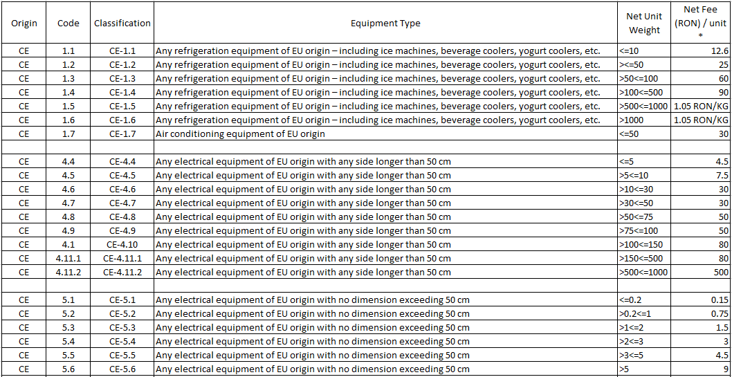 For electrical products, pursuant to OUG 5/2015 on Waste of Electrical and Electronic Equipment (WEEE), published in the Official Gazette, Part I, No. 253 of 16.04.2015, the Manufacturers and distributors are bound to inform the buyers, at the time of EEE sale, about the cost of collection, recycling and disposal under environmental conditions, by separately highlighting such cost.